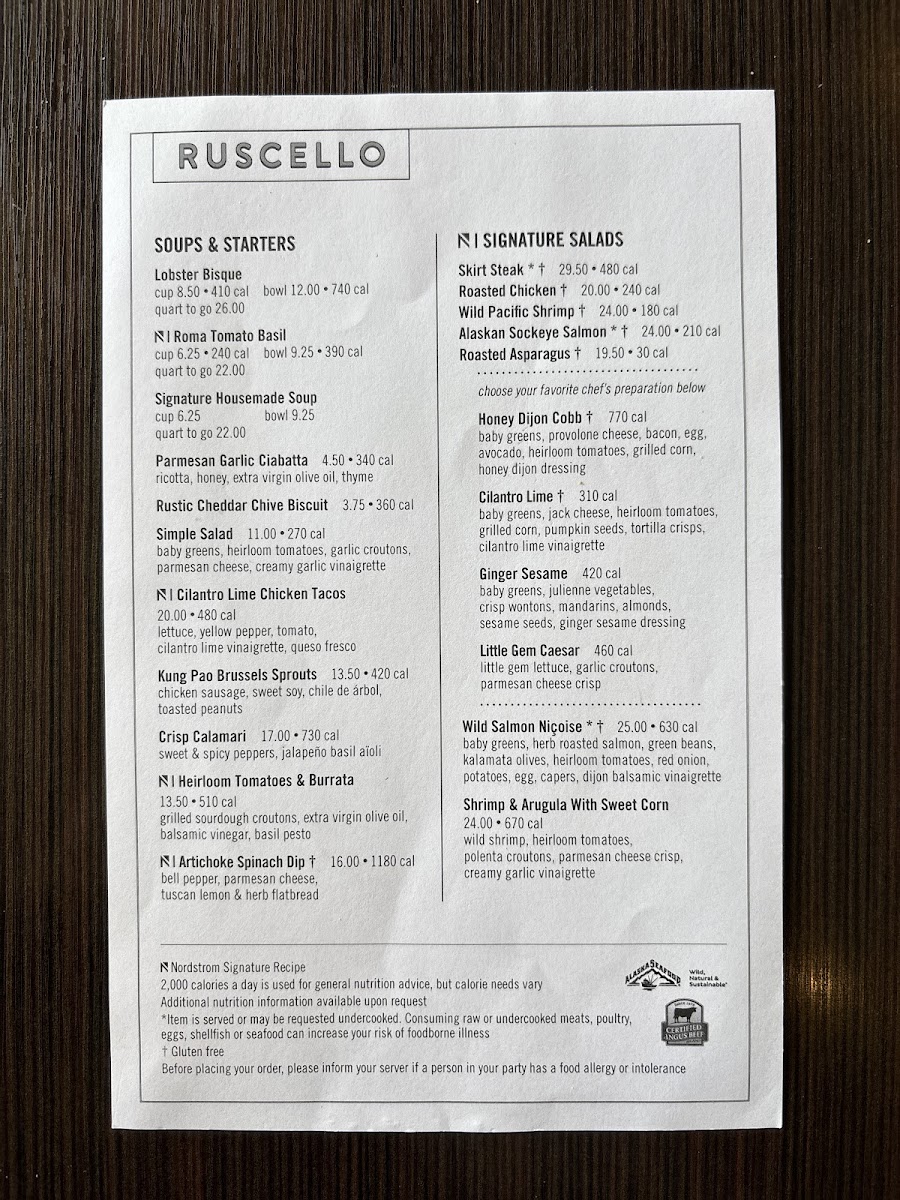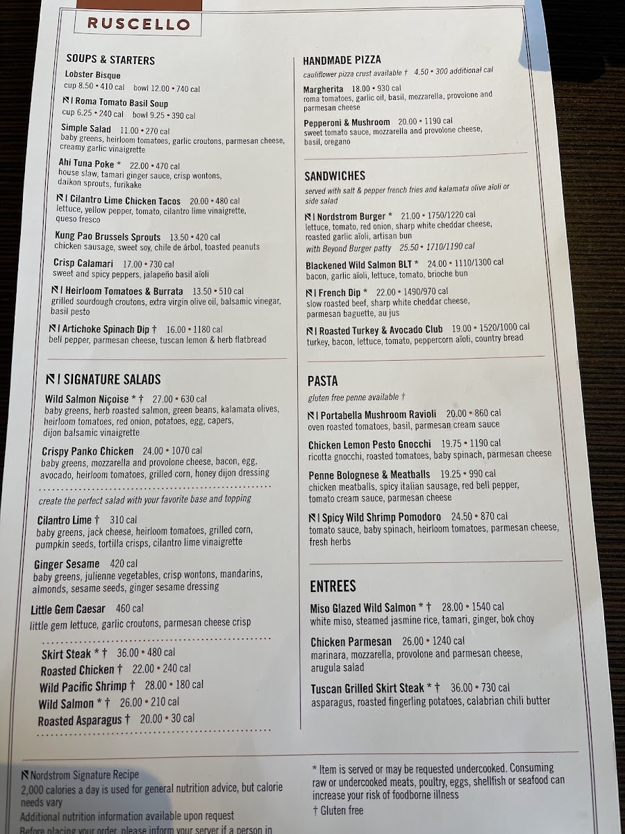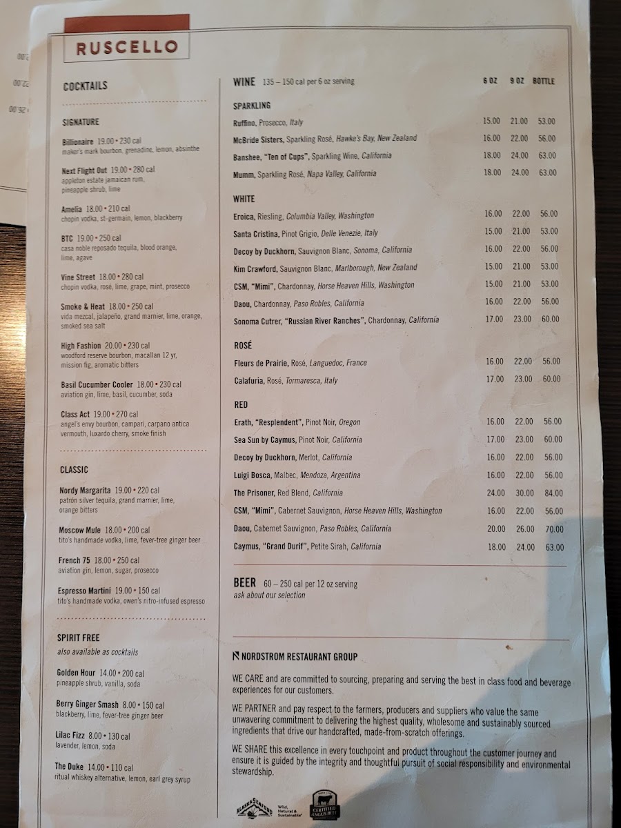 The menu at Ruscello at Nordstrom offers a relaxed and approachable selection inspired by Italian and Mediterranean flavors. It combines comforting, familiar dishes with thoughtful twists, perfect for casual lunches, leisurely dinners, or enjoying a quiet moment on their outdoor terrace.